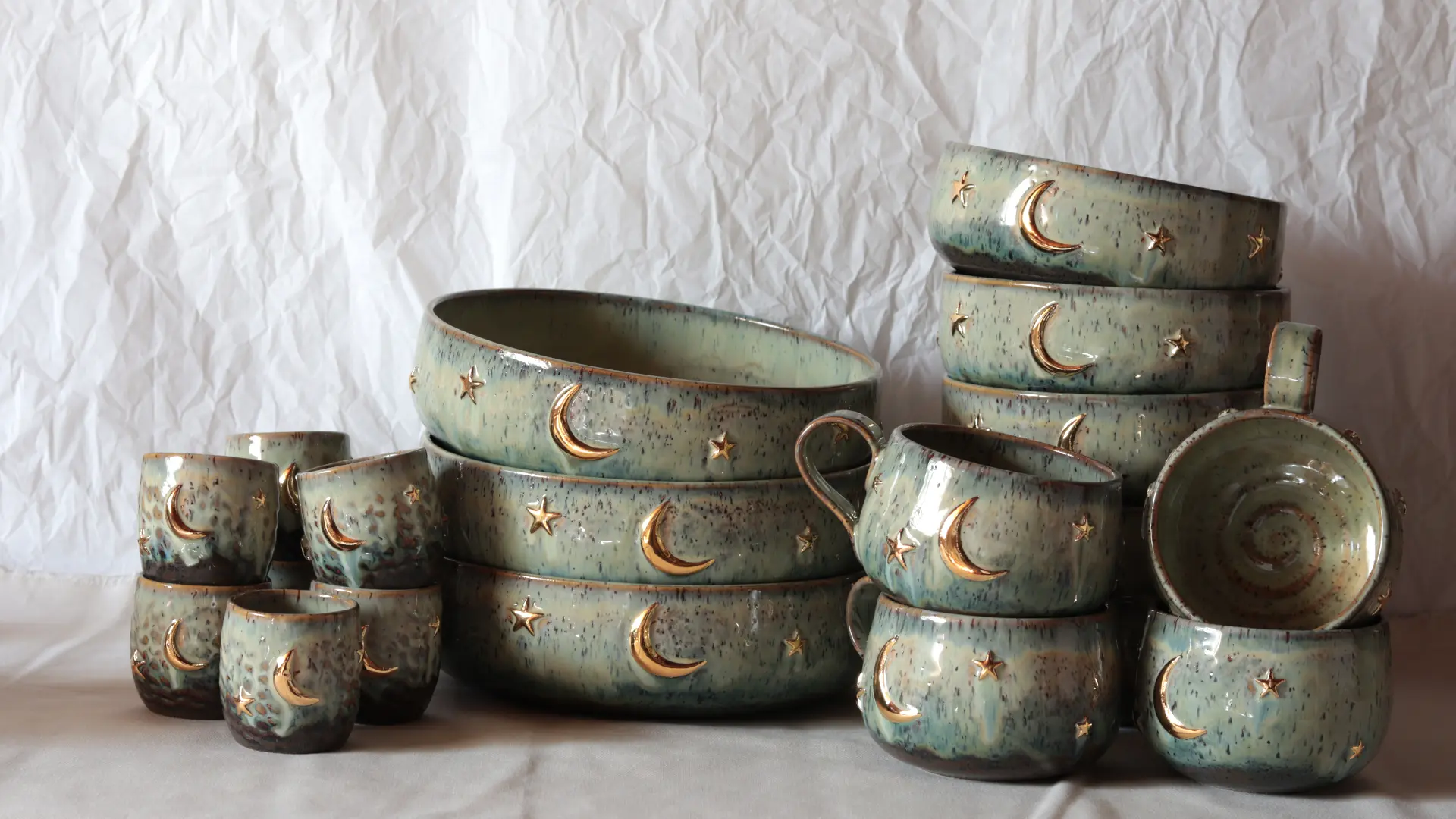 A handmade stoneware mug collection inspired by the Moon and Stars
